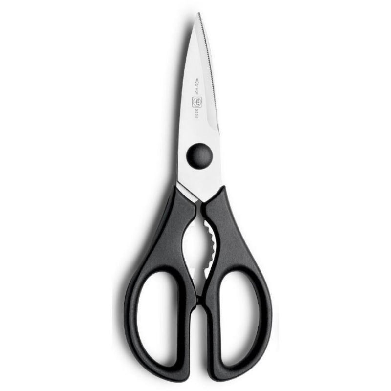 These Wusthof 21cm kitchen Shears are perfect for all manner of kitchen tasks, with straught edged blades that easily come apart for hygienic cleaning, they are great for preparing raw meat and fish. Featuring a handy bottle opener and nutcracker between the handles making them an even handier kitchen tool!