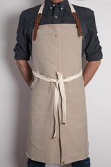 The Professional Secrets Canvas Weave Chefs Apron is made from thick, protective, 100% cotton canvas to protect the chef from heat, fluids and knives. It features a metal ring for a kitchen towel, slits for comfort and mobility allowing you to both sit and stand with ease, and an adjustable, invisible pocket - perfect for the modern chef.
