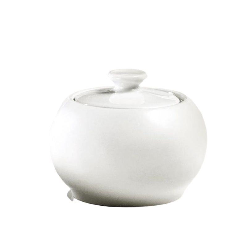 A simple and elegant way to serve sugar for your guests, this lovely rounded porcelain bowl and lid is elegant to grace any tea tray.