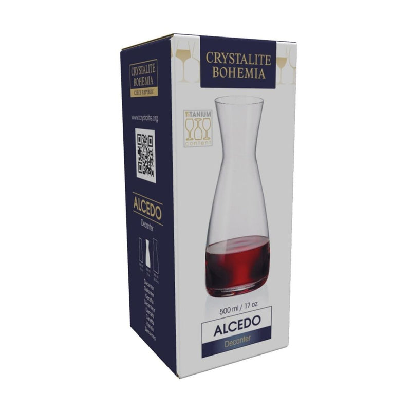 The Crystal Bohemia Alcedo Wine/Water Carafe - 500ml is a sophisticated blend of style and functionality. With a 500ml capacity, this elegant carafe is perfect for showcasing your favourite wines and spirits at dinner parties or special events. Crafted from titanium crystal flame-polished glass, it offers outstanding clarity, transparency, and durability. Designed for convenience, this carafe is dishwasher safe and resistant to greying, even with regular use.