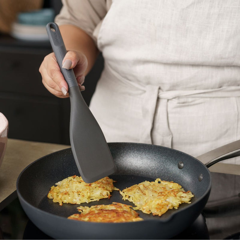 The Easy Lift Turner is perfect for getting under food, ensuring nothing is left in the pan. It has a thin nylon front edge specifically helpful for turning over food. Perfect for use in non-stick pans, it is dishwasher safe, comes with a 5-year guarantee, and the ergonomic handles are made from a sustainable wheat straw material reducing the use of virgin plastic by 50%.