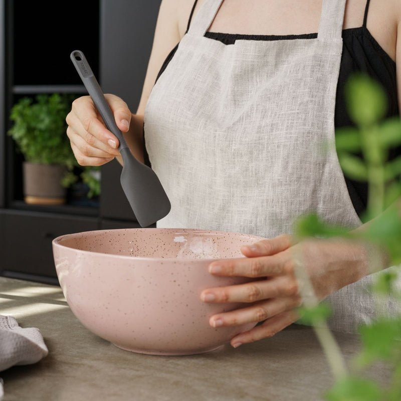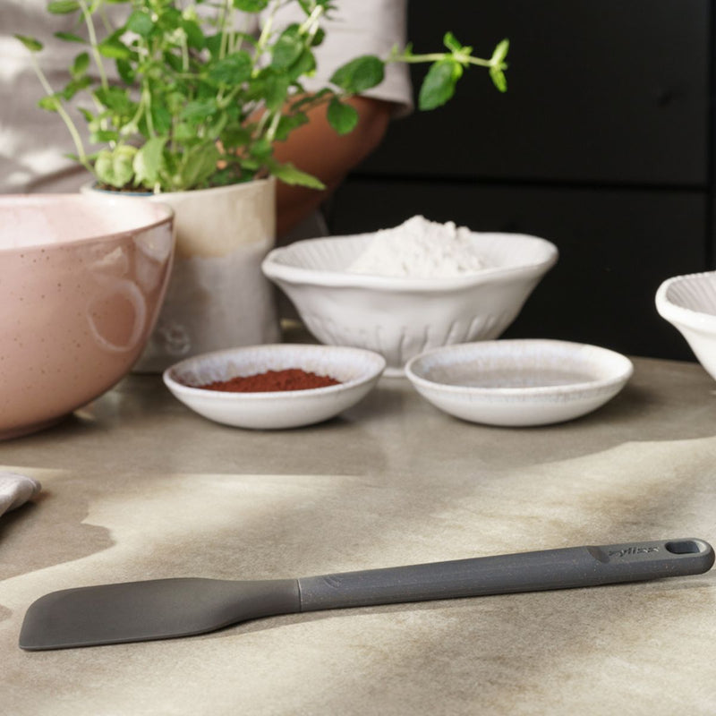 The Medium Spatula has a thin nylon front edge specifically helpful for effective scraping in every corner of your pan. Perfect for use in non-stick pans, it is dishwasher safe, comes with a 5-year guarantee, and the ergonomic handles are made from a sustainable wheat straw material reducing the use of virgin plastic by 50%.